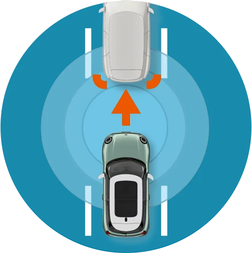 La MINI Cooper assure vos arrières avec la fonctionnalité Détection active des angles morts, disponible de série. Si un véhicule se trouve dans votre angle mort, des signaux visuels dans les rétroviseurs extérieurs et des vibrations dans le volant vous le signalent pour vous aider à éviter une collision en cas de changement de voie.