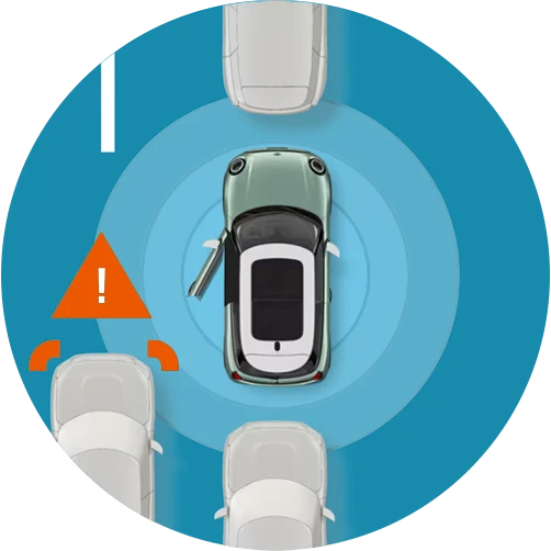 Rear Collision Prevention biedt visuele en akoestische signalen om de bestuurder te helpen mogelijke aanrijdingen bij het achteruitrijden te vermijden.