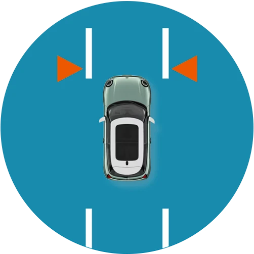 Meerdere camera's helpen de auto binnen zijn rijstrook te houden en waarschuwen de bestuurder als hij de rijstrook onbedoeld dreigt te verlaten.
